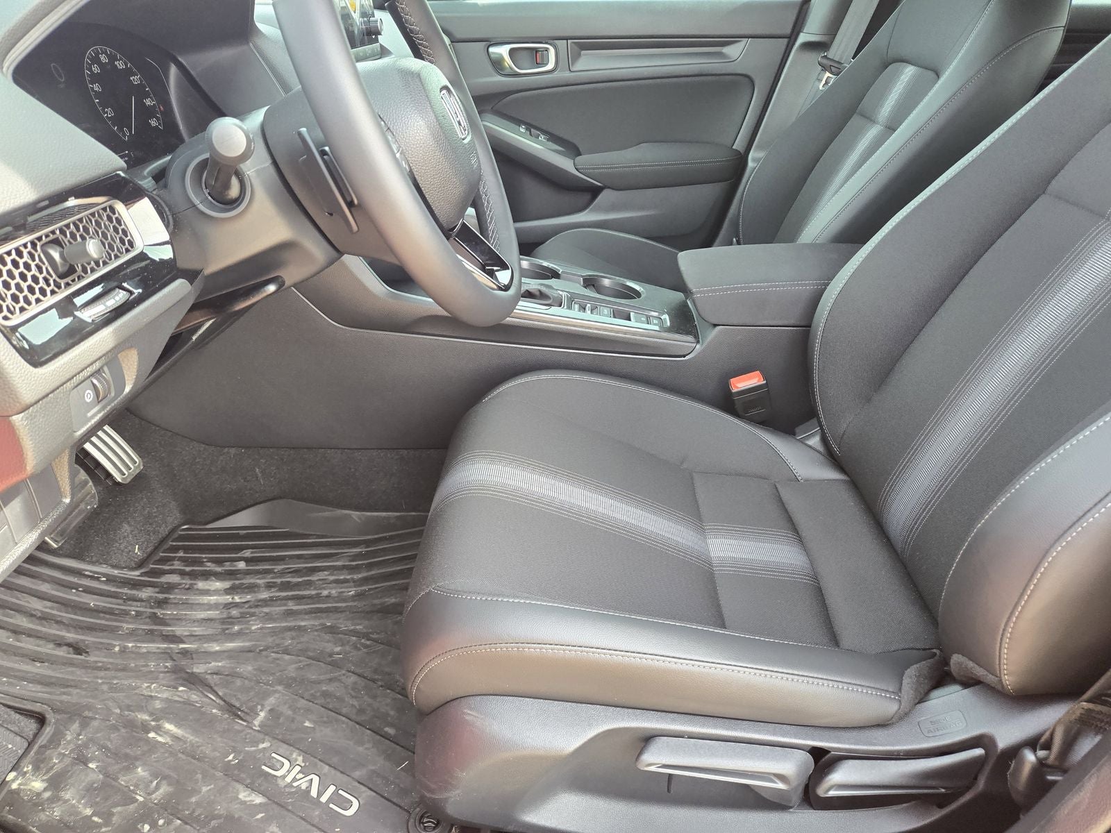 This 2026 Honda Civic Sport in Rallye Red comes with the following features: 2.0L I4 DOHC 16V CVT FWD 4-Wheel Disc Brakes, 8 Speakers, ABS brakes, Adaptive Cruise Control: Adaptive Cruise Control (ACC) with Low-Speed Follow, Air Conditioning, Alloy wheels, AM/FM radio, Apple CarPlay/Android Auto, Auto High-beam Headlights, Automatic temperature control, Blind Spot Information (BSI) System warning, Brake assist, Bumpers: body-color, Cloth/Leatherette Seating Surfaces, Delay-off headlights, Driver door bin, Driver vanity mirror, Dual front impact airbags, Dual front side impact airbags, Electronic Stability Control, Emergency communication system: HondaLink, Exterior Parking Camera Rear, Four wheel independent suspension, Front anti-roll bar, Front Bucket Seats, Front Center Armrest, Front reading lights, Fully automatic headlights, Heated door mirrors, HondaLink, Illuminated entry, Knee airbag, Lane departure: Lane Keeping Assist System (LKAS) active, Leather Shift Knob, Low tire pressure warning, Occupant sensing airbag, Outside temperature display, Overhead airbag, Panic alarm, Passenger door bin, Passenger vanity mirror, Power door mirrors, Power steering, Power windows, Radio data system, Radio: 180-Watt Audio System, Rear anti-roll bar, Rear side impact airbag, Rear window defroster, Rear window wiper, Remote keyless entry, Security system, Speed control, Speed-sensing steering, Split folding rear seat, Steering wheel mounted audio controls, Tachometer, Telescoping steering wheel, Tilt steering wheel, Traction control, Trip computer, and Wheels: 18 Gloss Black Alloy. 30/38 City/Highway MPG