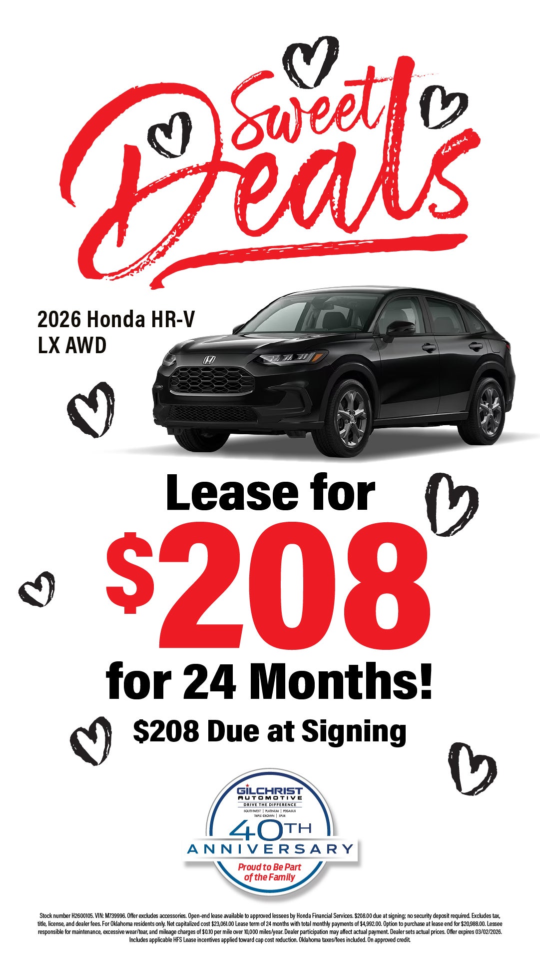 Shop $208/mo Lease Special on 2026 Honda HR-V LX AWD!